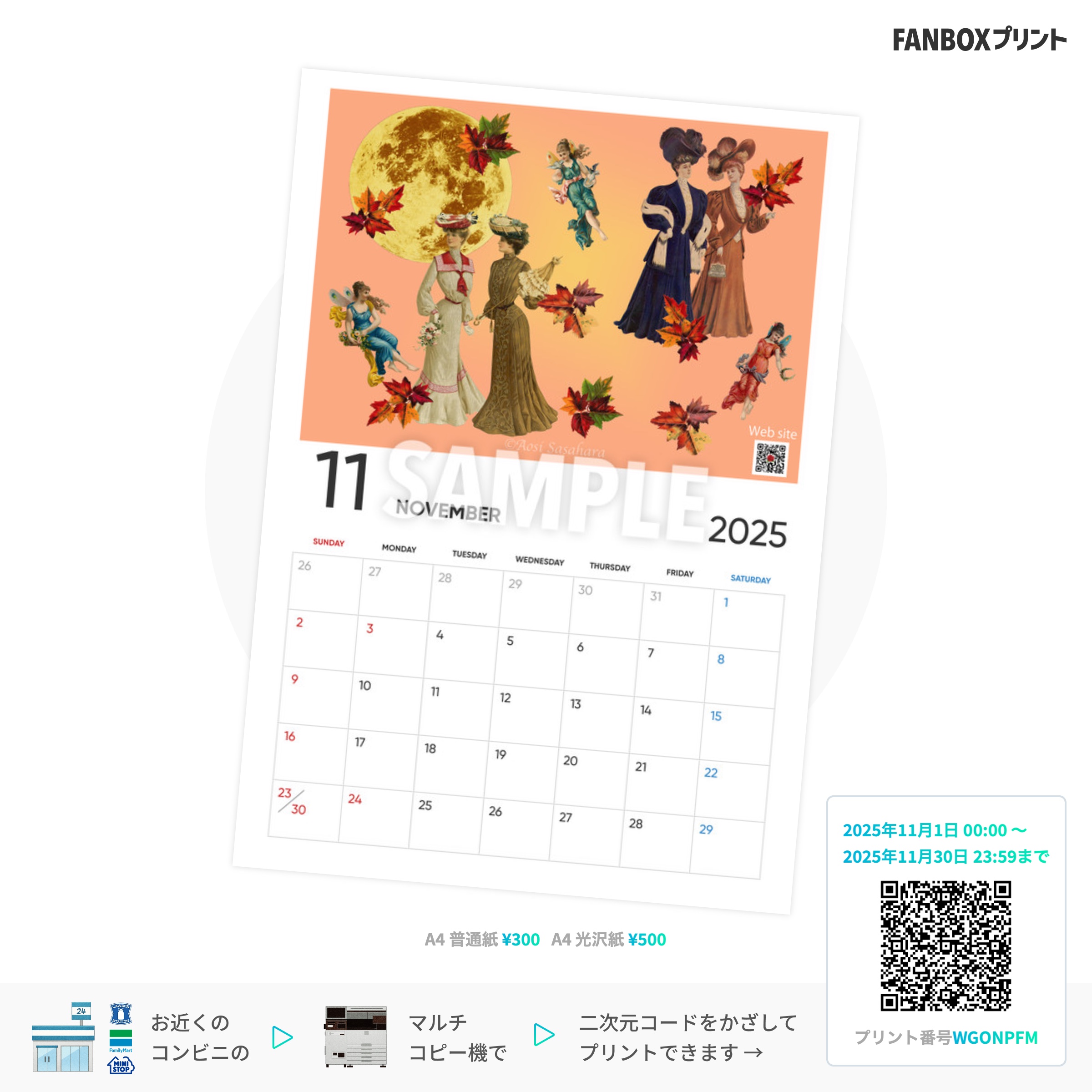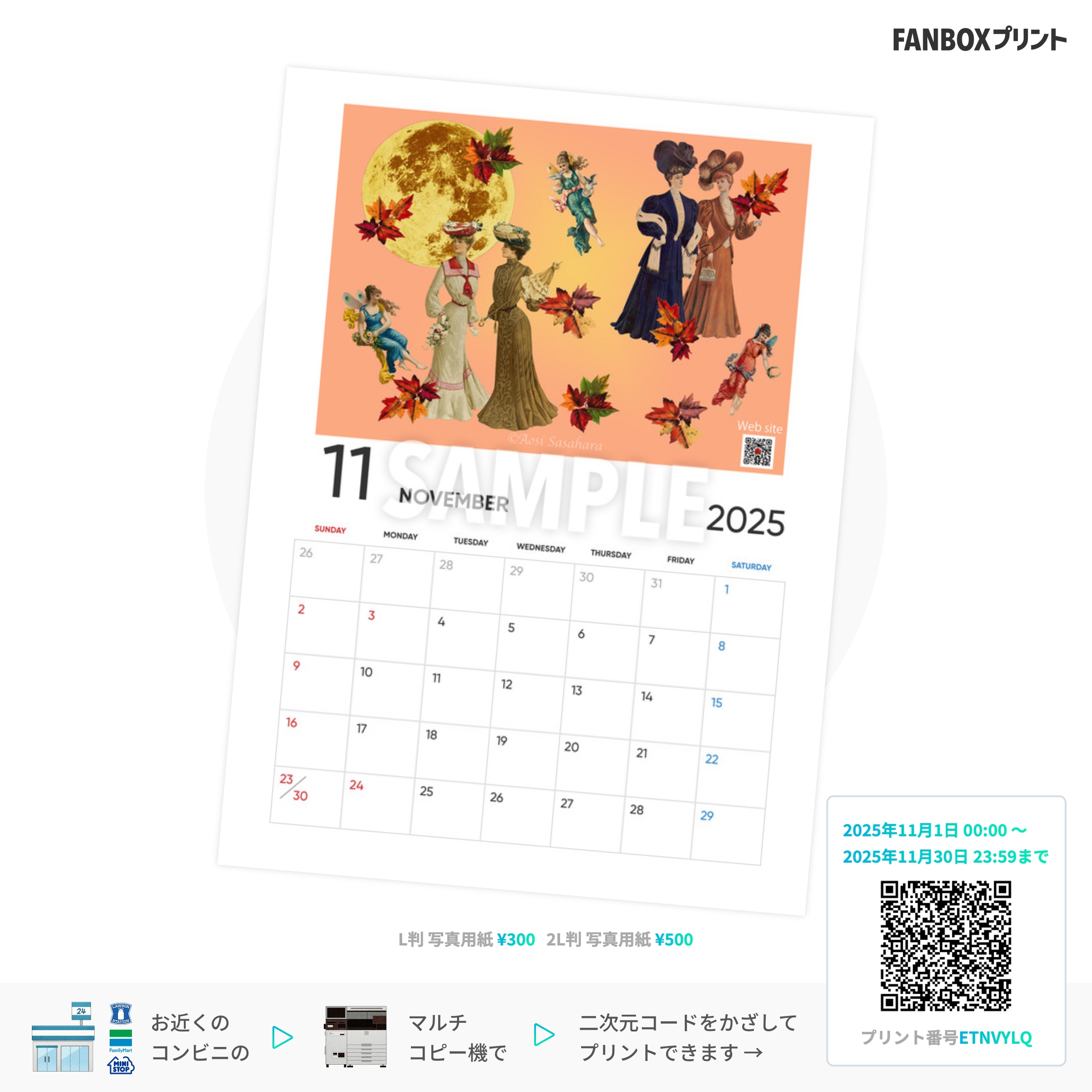 PixivFANBOXプリントにて、11月のカレンダーが審査通過しましたので、お知らせいたします。